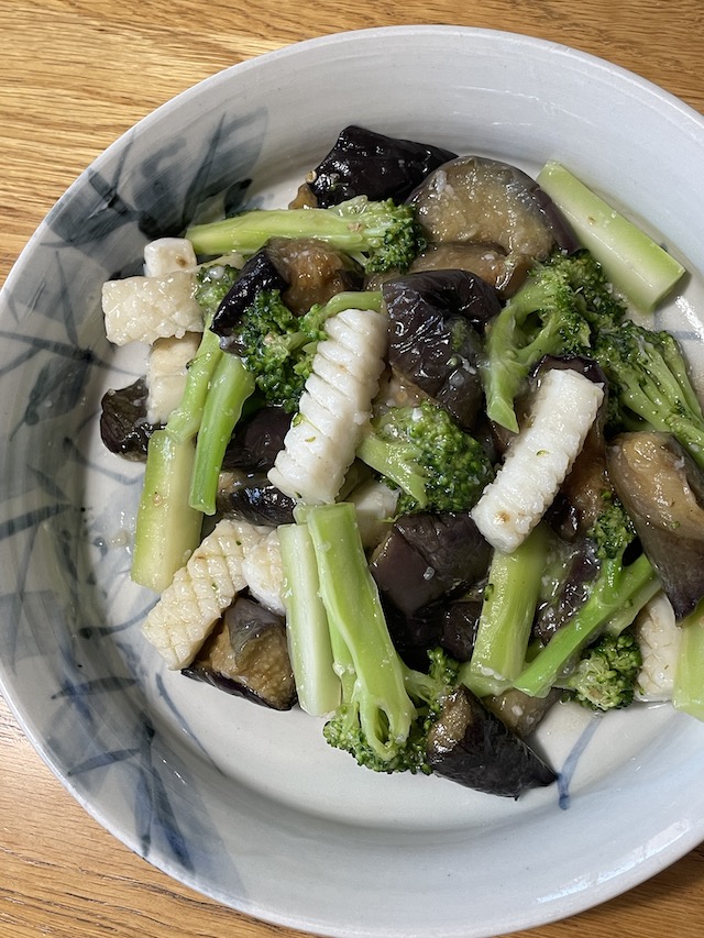 27日 8月 2025 いただきもの・メニュー追加 2025 小諸のK山さんから10個も送っていただいたとっても美味しかったブロッコリー! 追加メニューです。「イカと茄子、ブロッコリーの塩炒め」これが一番美味しかったかも〜。 *ブロッコリーは柔らかめに茹でておく、冷凍のイカと冷凍の油通しをしてある茄子を炒め合わせ、塩コショー、チキンスープの素を入れて若干煮るだけ! tagPlaceholderカテゴリ: 日々の暮らし, 2025年8月 コメントをお書きください コメント: 0