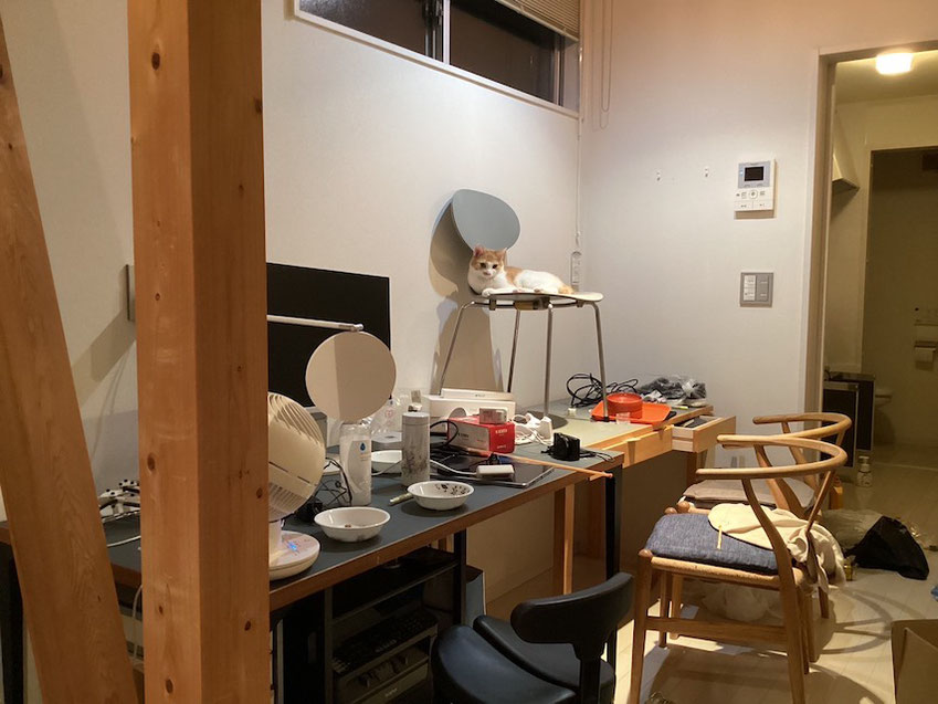 片付け中の仕事部屋、チャイがのんびり監視中かな?遊びに行くねー!